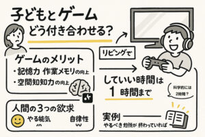 ゲームは上手に付き合うことで勉強へのいい効果があるものとして紹介しています。