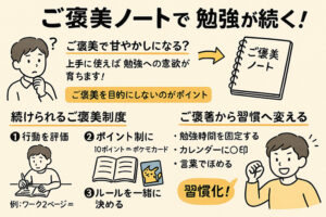 ご褒美ノートは勉強へのハードルを下げ、きっかけ作りとして働いてくれます。