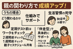 このブログでは、そんな「塾なしでも成績を上げられた家庭の実例」をもとに、再現できる形で家庭学習の仕組みを紹介しています。