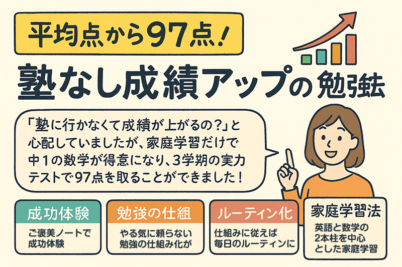 でも、毎日の過ごし方を少し変えただけで、3学期の実力テストでは97点を取り、数学が得意科目になりました。