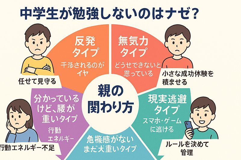 中学生は小学生のようにつきっきりになる必要はありませんが、高校生のように全て本人任せにしても上手くはいきません。仕組みを上手に使いながらも、親の適切な関わり方が大切です。