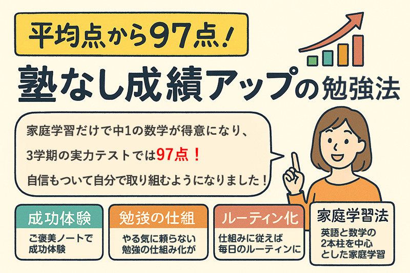 でも、毎日の過ごし方を少し変えただけで、3学期の実力テストでは97点を取り、数学が得意科目になりました。
