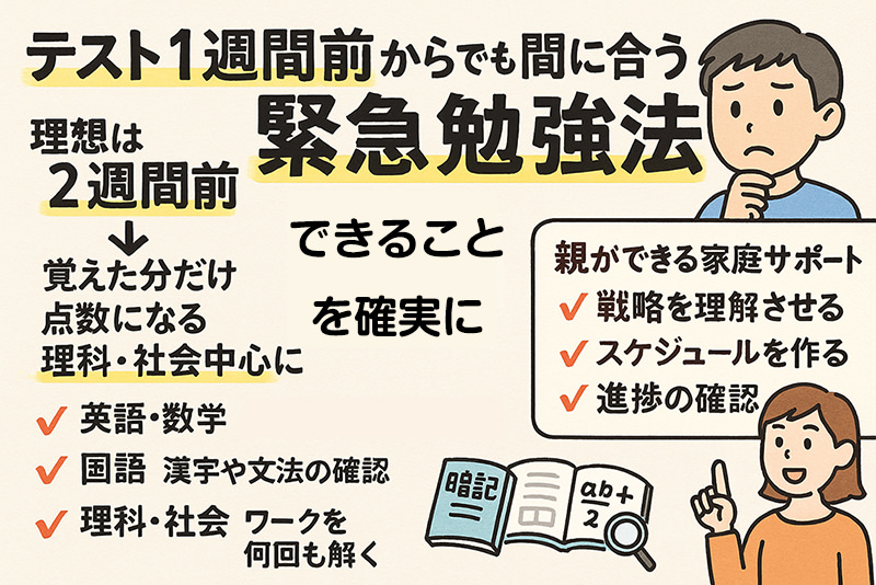テスト1週間前からでも間に合う!何もしていない中学生の勉強と家庭サポート